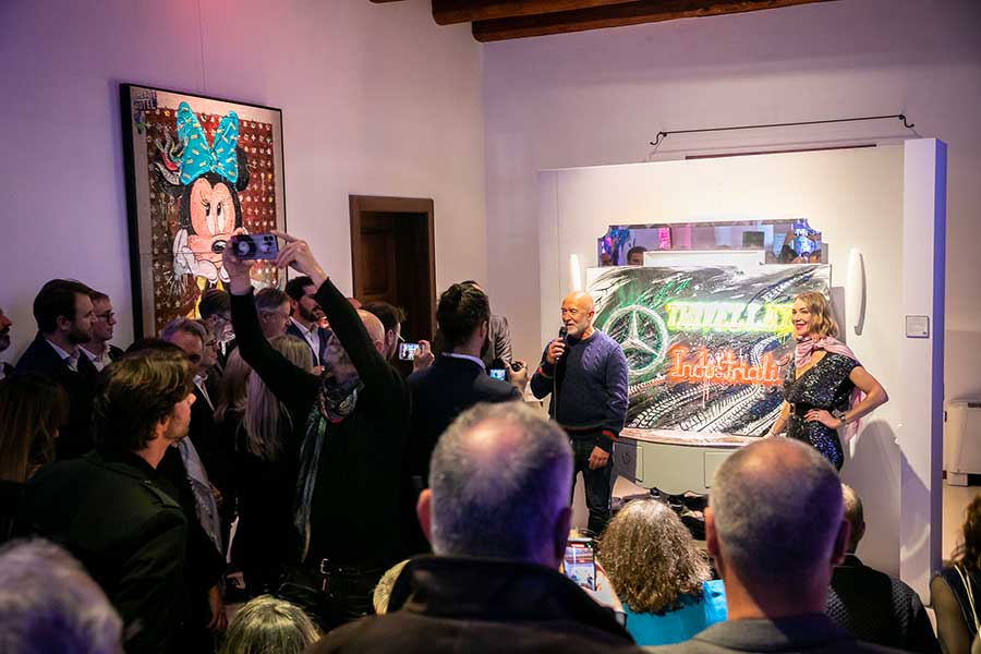 La quindicesima opera, realizzata in occasione di DRILLED INDUSTRIAL SRL — main partner dell’evento — celebra la storica concessionaria Mercedes-Benz, che quest’anno festeggia i suoi 100 anni di attività e che, ancora una volta, si è confermata protagonista assoluta nella creazione di questa perfetta unione tra arte e business.
