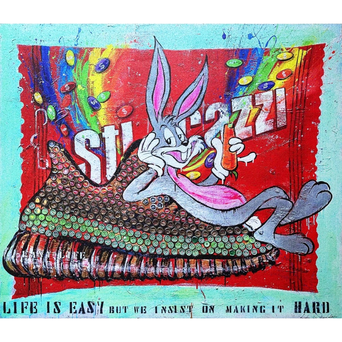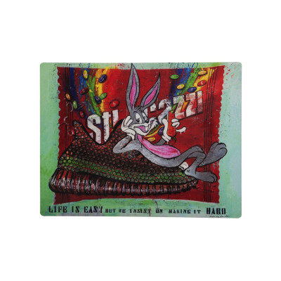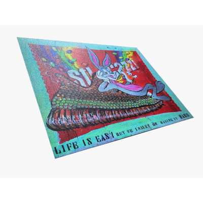 Zerbino artistico(Limited Edition) con la stampa dell'opera "EASY LIFE" di Ludmilla Radchenko in altissima risoluzione direttamente su gomma riciclata dai pneumatici dei camion.