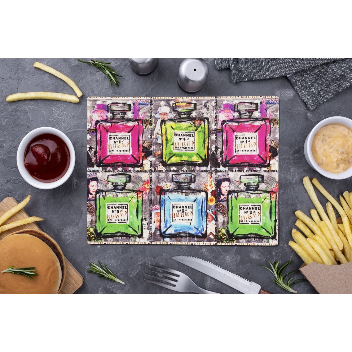 Continua la sperimentazione creativa di Ludmilla Radchenko, pop artist eclettica e creatrice di innovativi "multipli d 'arte" dove i soggetti dei suoi quadri rivivono su pregiati tessuti: dopo varie collaborazioni nell 'ambito fashion, stavolta l'artista rivolge la sua attenzione alla scoperta di tutte le possibilità dell 'interior design, per rendere l'arte ancora più fruibile e versatile. In collaborazione con Emmevi, Ludmilla crea tovagliette da cucina che riprendono le grafiche delle sue varie collezioni artistiche, regalando colori che donano gioia e illuminano i momenti familiari.